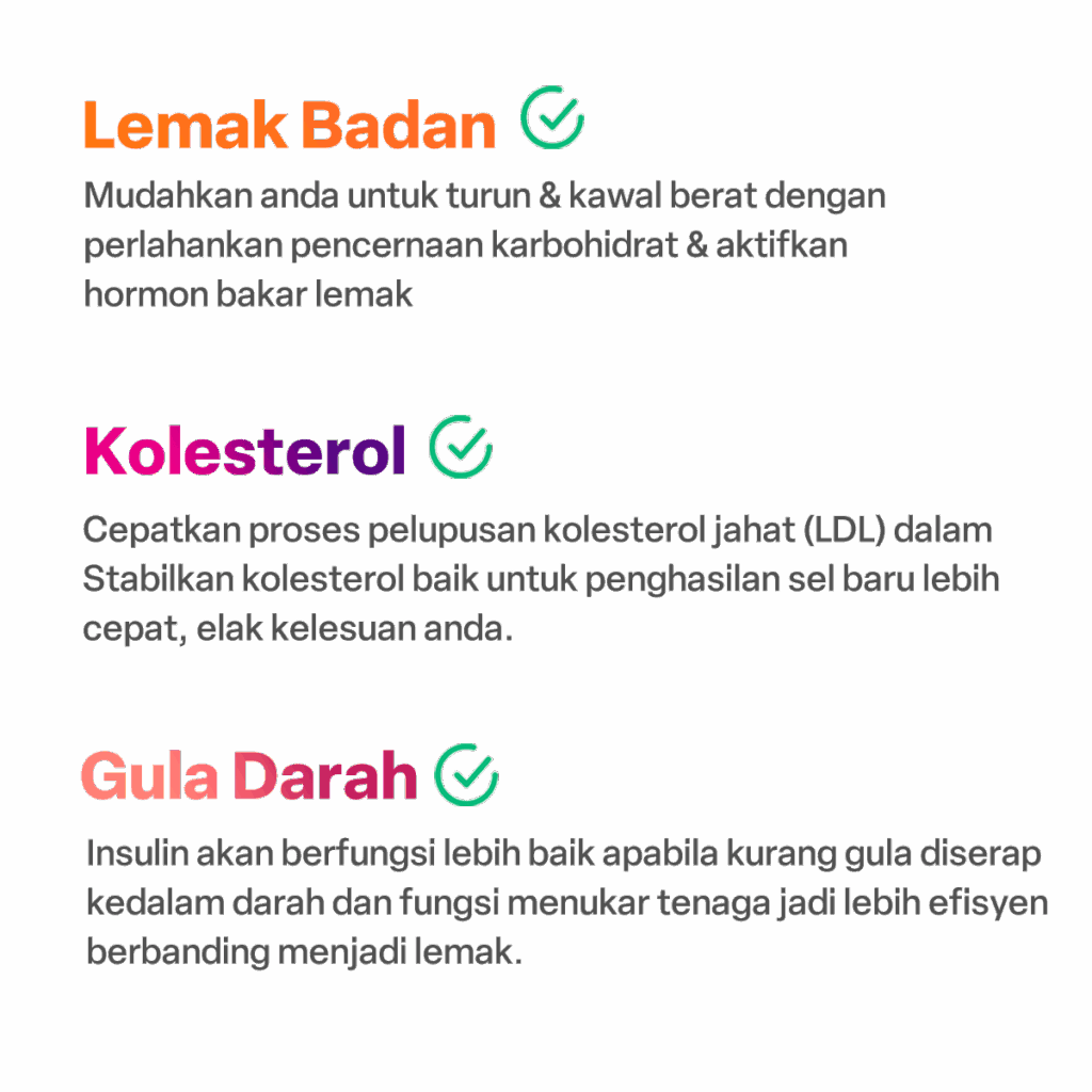 BIOKENAF® target baiki proses metabolisma badan dengan merawat pencernaan karbohidrat, perlahankan serapan gula ke dalam darah jadikan fungsi insulin & hati lebih baik, mengakibatkan hormon pembakar lemak aktif secara berterusan. Hasilnya, usaha untuk anda buang lemak & turun berat jadi lebih mudah, cepat dan kekal.